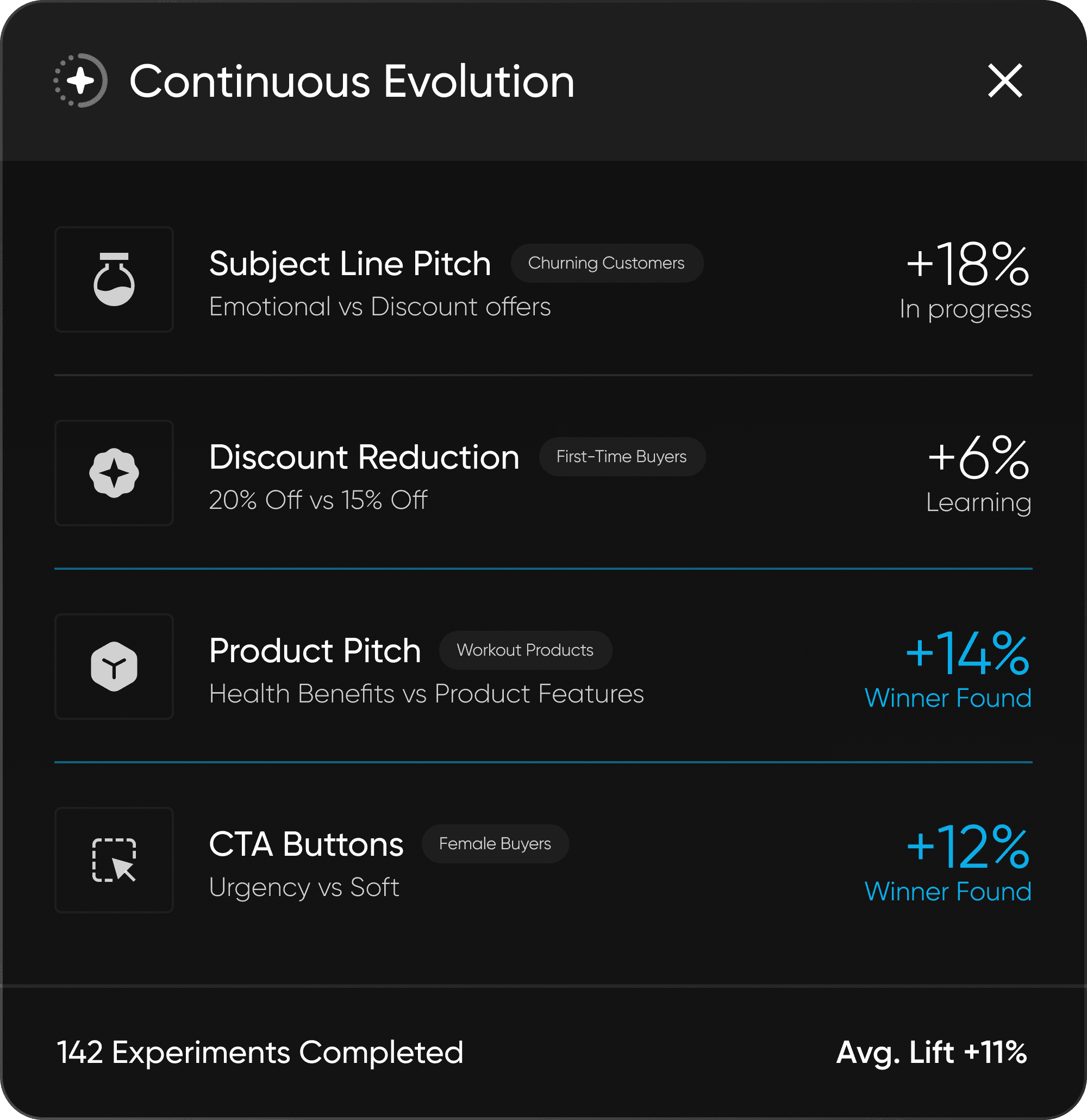 Just set your marketing goals and Nexie drives them. It continuously experiments, optimizes, and adapts campaigns to move the needle on the metrics that matter most to your business.